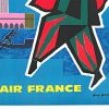 Created for Air France’s international advertising campaigns, this poster highlights Venice as a key European destination. Georget distills the city into its most recognizable elements—a masked carnival figure, gondola, and architectural landmarks—rendered in a bold, angular modernist style. The English-language U.S. edition reflects Air France’s focus on transatlantic travelers during the golden age of air travel.