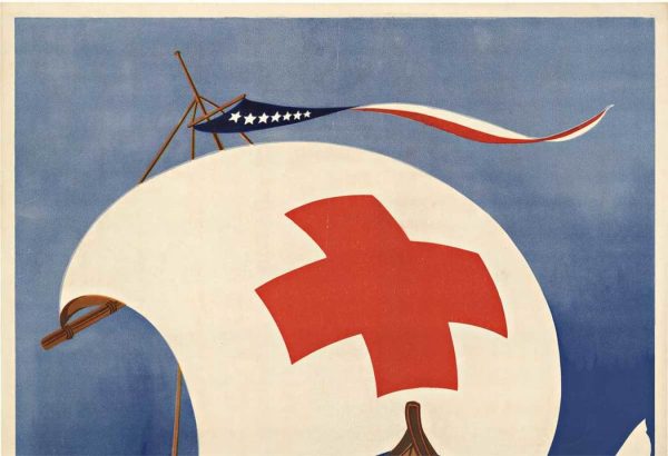 Linen-backed, post-World War 1 Red Cross poster. Certificate of Authenticity.