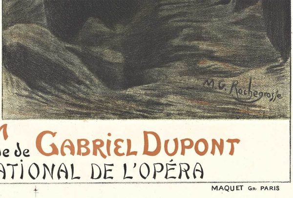 Original vintage French opera poster: Antar. Artist: Georges Rochegrosse. Stone lithograph linen backed in very fine condtion, ready to frame.