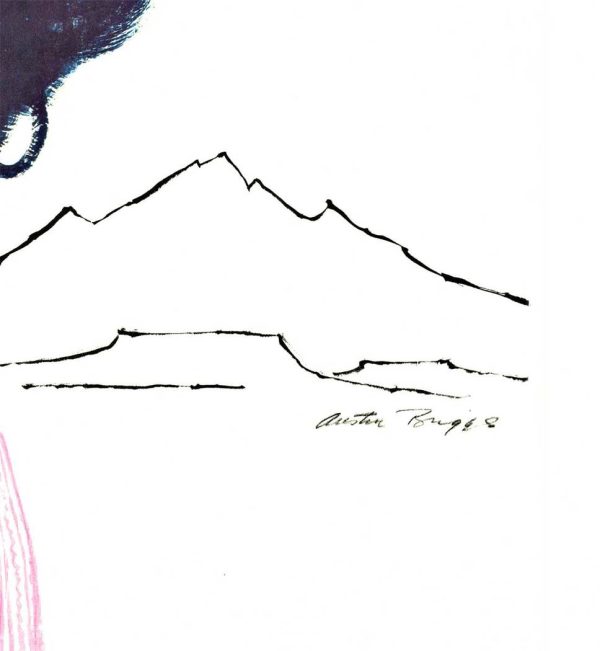 Issued by TWA during its global expansion under Howard Hughes, when airlines commissioned leading illustrators to define destinations through distinctive visual identities. Austin Briggs’ contribution stands out for its reduction and psychological presence rather than descriptive detail.