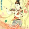 The vertical Japanese text integrates seamlessly into the composition, adding a rhythmic visual presence without interrupting the overall harmony. Every element feels considered yet effortless, contributing to a work that balances spiritual symbolism with refined decorative beauty.