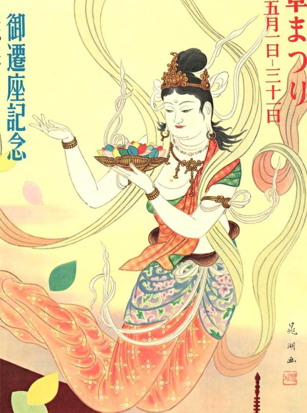 Asakusa Festival Sensoji Temple Tokyo Japanese Poster, Floating Kannon Figure, Linen Backed