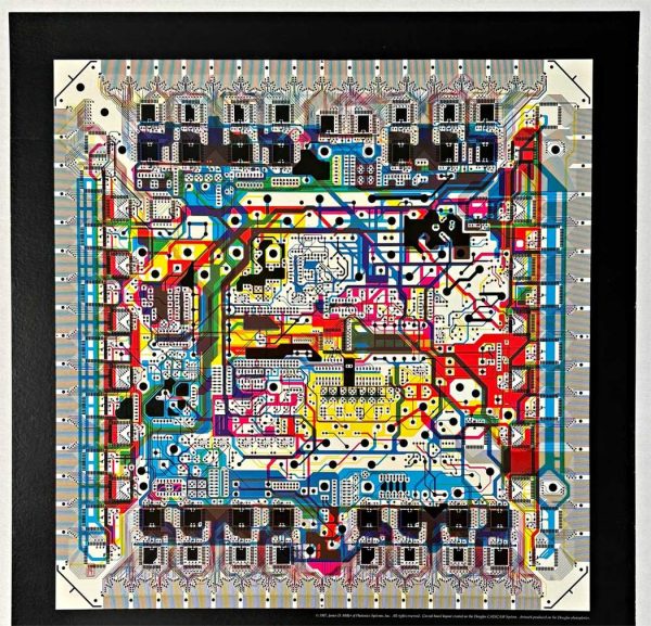 Information Art / Diagramming Microchips. 1990. New York: Museum of Modern Art. Image generated by Intel Corporation 386 microprocessor. Scarce poster published on the occasion of the 1990 MoMA exhibition. 37 ¼ x 24 ½”. Linen backed. Light edge wear. A.