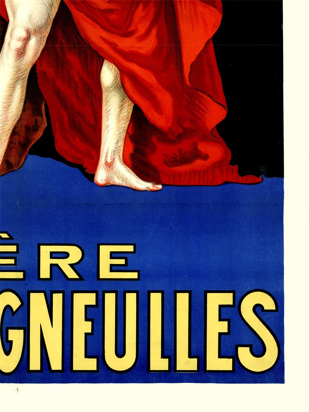 About the beer: Champigneulles, founded in 1897 near Nancy, became one of France’s most significant beer producers. The “original Champigneulles” refers to its Grande Blonde. The poster’s bold composition reflects the mid-1920s shift toward a more muscular, graphic Art Deco influence.