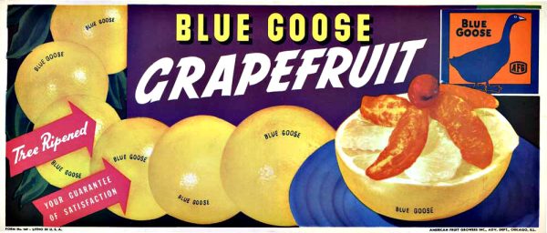 Original Blue Good Grapefruit. Archival linen backed horizontal poster that would be great for your kitchen or dining room.