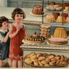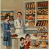 The image features the baker presenting the shop full of various types of breads, pastry, cookies and cakes. It Italy you still go to the “Negozio del pane” to purchase your daily bread. At the turn of the century when bread was pure and without preservatives, bread only lasted 1 day before it turned hard. Great very rare early art that is suitable for your kitchen or dining room.
