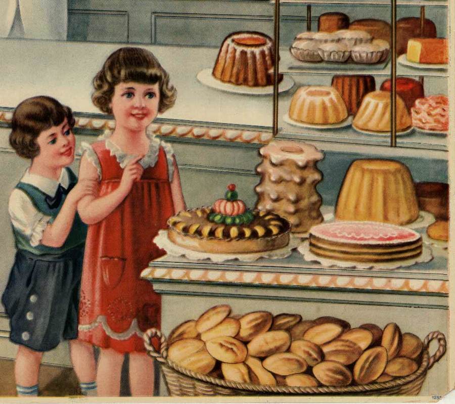 Original Bread Store or Pastry Shop chromolithograph without text. This is printed on a thicker paper stock and is not linen backed. The last time this poster was document at auction was 2002. Printed in Germany. If you look closely at image #2 there is a tiny corner on this image but otherwise the image is in excellent condition.