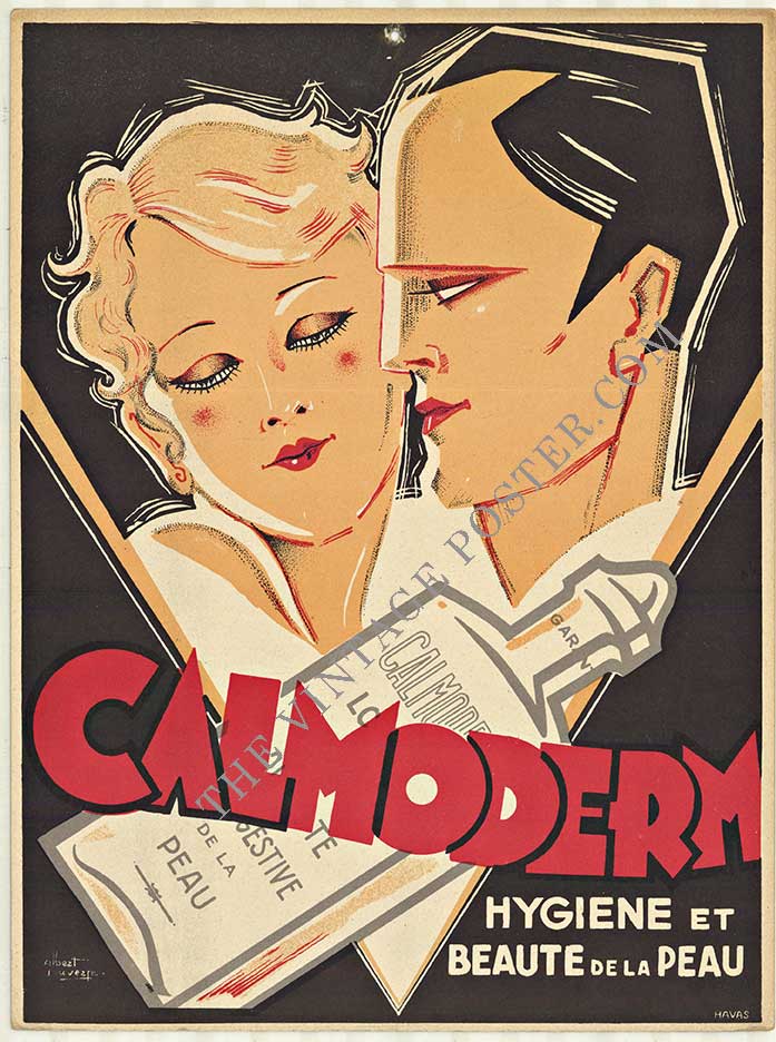 This poster arrives at the exact moment the modern beauty industry was being invented. Before the 1920s, women didn’t openly discuss skincare products. After? It became essential, scientific, and aspirational. Calmodern positioned itself in that revolution—”Hygiene et Beauté de la Peau” (Hygiene and Beauty of the Skin)—promising that modern women could be both clean and beautiful, that skincare was a matter of choice and sophistication, not accident or vanity. The small format meant this lived in intimate spaces: pharmacy displays, dressing rooms, powder rooms. It was meant to be discovered privately, to speak directly to you.