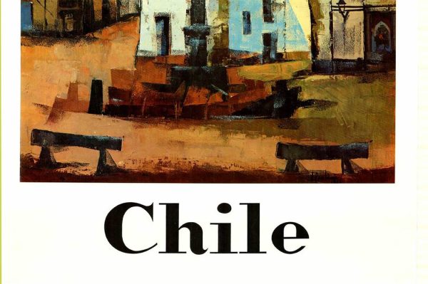 1960s Chile Travel Poster Colonial Plaza Fountain Scene Linen Backed