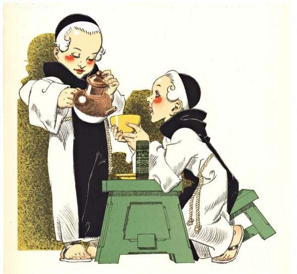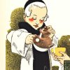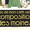 Stone-lithography made Composition des Moines’ visual identity possible at scale. Vincent’s design shows complete command of the medium. The color separation is precise; the drawing demonstrates a confident understanding of what lithographic stone delivers. Each element—the monks’ robes, the apparatus, the lettering—was separated into individual color plates and printed in sequence. This wasn’t quick or cheap. It was professional commercial art directing French consumer culture in the 1920s.