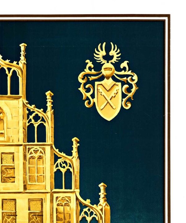 Professionally conservation-mounted and linen-backed, this original lithograph remains in excellent condition, preserving its rich color and crisp detail. It stands as a sophisticated example of German advertising design, where heritage and visual restraint combine to powerful effect.