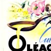 Look at what he accomplished. A wooden spoon—humble, domestic, intimate—overflows with golden oil at the composition’s heart. Surrounding it, botanical abundance: pink flowers in full bloom, delicate seed pods, yellow blooms reaching upward. The color palette vibrates with life: deep yellows, soft pinks, cool blues, creating rhythm and movement. This wasn’t technical propaganda; this was an artist saying: “Look at what grows. Look at what nourishes. This is worth fighting for.” Your eye moves from the spoon’s golden fullness to the flowering abundance above—there’s generosity here, richness, possibility. Notice how even in scarcity, Mercier painted beauty. This was a bold artistic choice during wartime: offering citizens not fear, but invitation to participate in something essential.