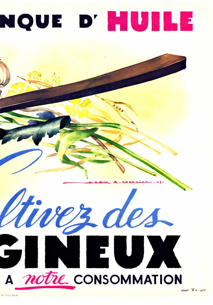 La France Manque d’Huile — Jean Adrien Mercier, 1943, Original Wartime Agricultural Poster | French Resilience & Agricultural Patriotism