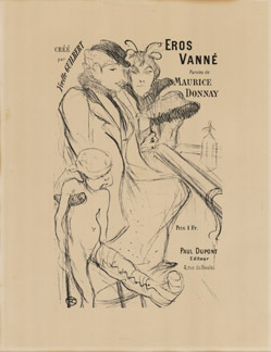 This color lithograph after Henri de Toulouse-Lautrec’s Elles (1896) was printed in Paris by Mourlot Frères in 1951. The composition, originally created as the frontispiece for Lautrec’s celebrated Elles album, was adapted here with overprinted exhibition text for La Plume, referencing the 1896 presentation of the series.