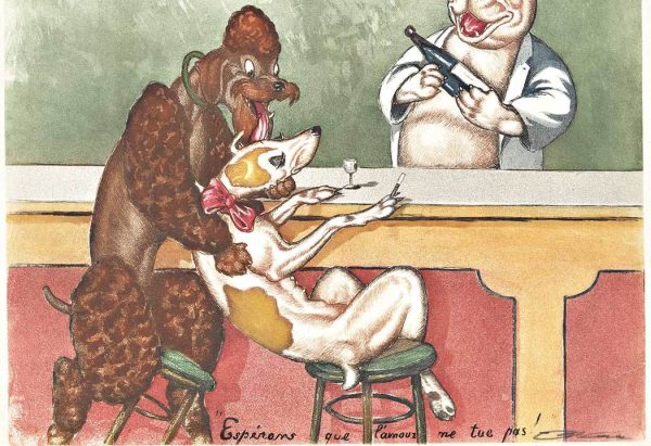 This rare and very difficult larger image would be part of this artist’s collection of the dirty dogs of Paris. We have not been able to locate any other of this image in any size other.