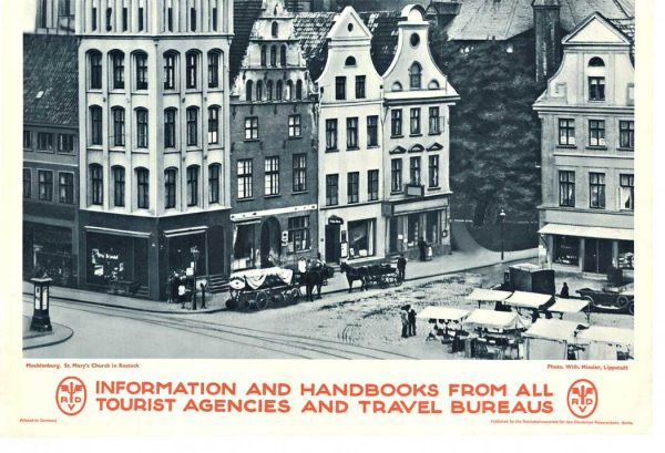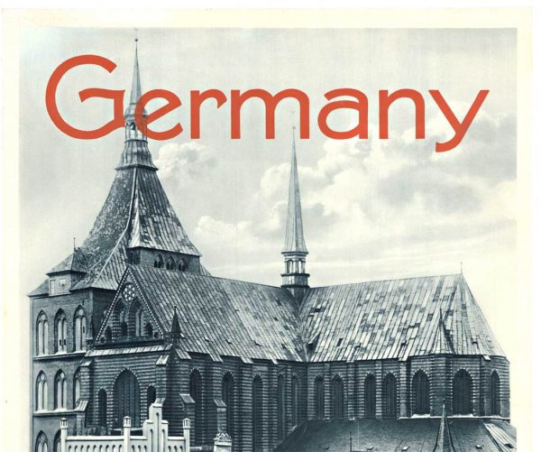 Be the first to review “1930s German Travel Poster Rostock St. Mary’s Church Mecklenburg, Linen Backed Lithograph”