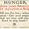 Original WW1 poster; HUNGER. For three years, America has fought starvation in Belgium.