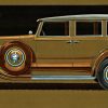 Add sophistication and classic automotive charm to your home or office with this stunning Paul Bracq car art print. Illustrated by the legendary automotive designer, this artwork showcases a beautifully detailed 1930s luxury sedan, rendered in rich browns and golds with the signature sleek lines and elegance that defined the era.