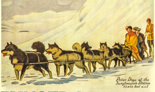Subject: Jungfrau Railway, Bernese Oberland, dog sled scene