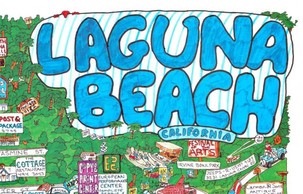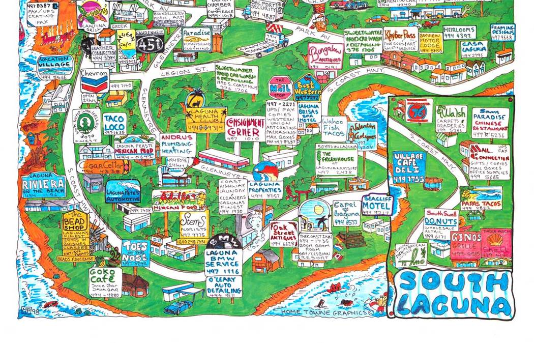 Laguna Beach California illustrated tourist map poster 1998 Home Towne Graphics lithograph