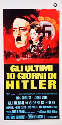Original Italian movie poster; GLI ULTIMI 10 GIORNI DI HITLER. Prima Edizione Italiana 1973. Scare your friends with this powerfully striking movie poster. This is an Original Lithograph Vintage Poster; it is not a reproduction. This poster is professionally acid-free, conservation-mounted, and in very good condition.
