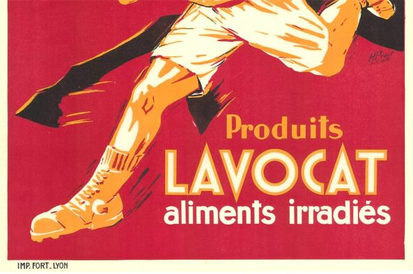Issued in France to promote Lavocat food products, the poster reflects a period of fascination with vitality and modern nutrition. Its graphic clarity and dynamic movement place it firmly within the Art Deco tradition, where sport and industry converge in streamlined, impactful imagery.