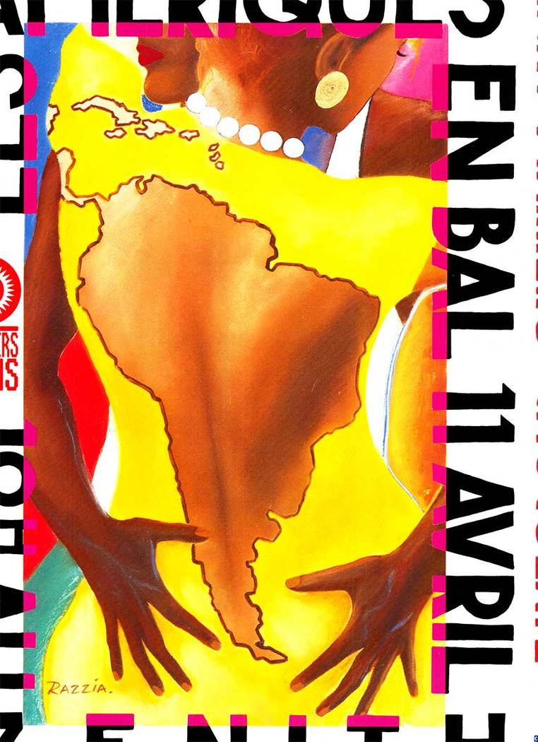 Les Ameriques en Bal — Razzia (Linen Backed) is an original vintage poster created by the renowned artist Razzia (a.k.a. Gerard Courbouleix Deneriaz) for a legendary Latin music night at Zenith. This artwork vibrantly celebrates the spirit and rhythm of the Americas, featuring bold event typography alongside a striking design that overlays dance imagery with a powerful map motif. Collectors love pieces like this because they feel alive—high energy, graphic, and unmistakably of their era—while still delivering strong visual impact as a wall display.