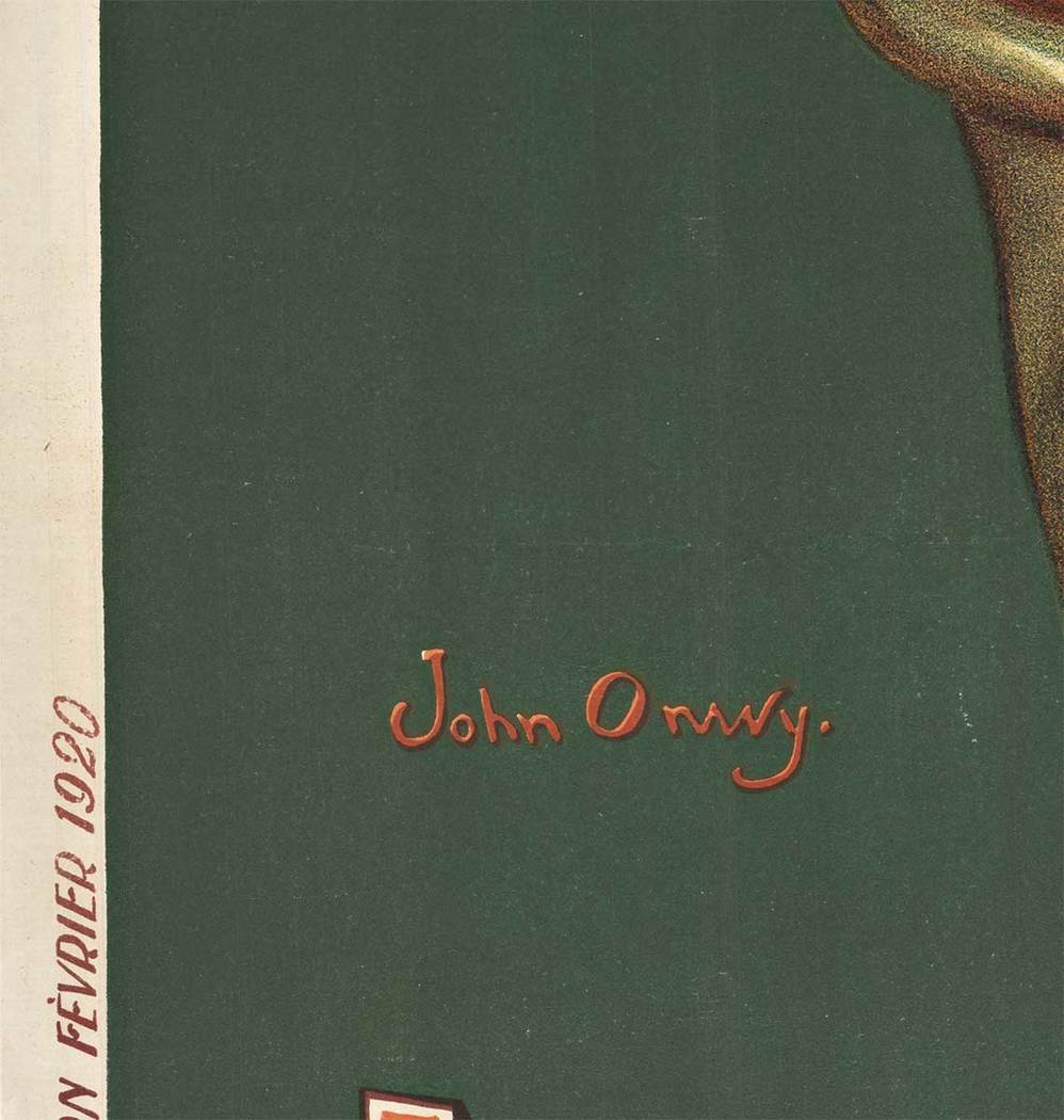 Produced by Vercasson, one of France’s most prestigious stone-lithograph printing houses, this poster exemplifies the technical excellence and artistic ambition that defined the golden age of French commercial lithography. The registration of colors, the subtlety of tonal gradations, and the luminosity of the golden hues remain remarkably true despite a century of stewardship. Archivally linen-backed and professionally conserved, this poster is in very good condition (with only minor, period-appropriate touch-ups) and preserves the integrity of Onwy’s original vision. At 30.75″ × 46.25″, the generous format was typical of display pieces meant for bakers’ shops and premium groceries—a size that commands presence and investment attention from serious collectors.