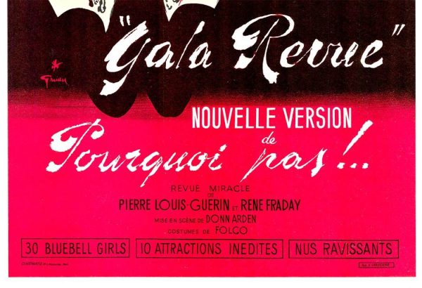 Original Lido “Gala Revue” Pourquoi pas!, linen-backed French cabaret poster by famed artist Rene Gruau. Very fine, grade A condition.