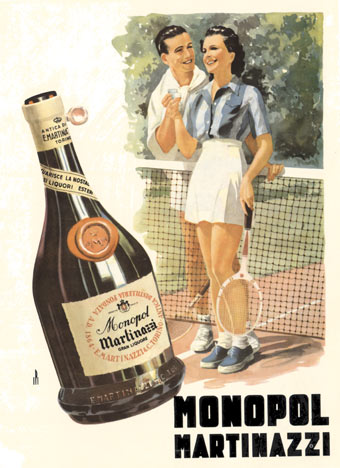 Monopol Martinazzi represents a distinctive moment in Italian poster advertising. The design perfectly encapsulates the optimistic spirit of 1950s Europe, when sports and social leisure intersected with sophisticated marketing.