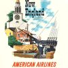 Original New England American Airlines vintage travel poster. Size 30” x 40”. Archival linen-backed, untrimmed, A condition.