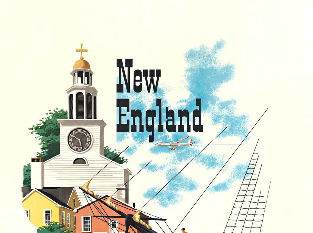 New England American Airlines – Bern HIll 1950s Vintage Travel Poster – Linen-Backed