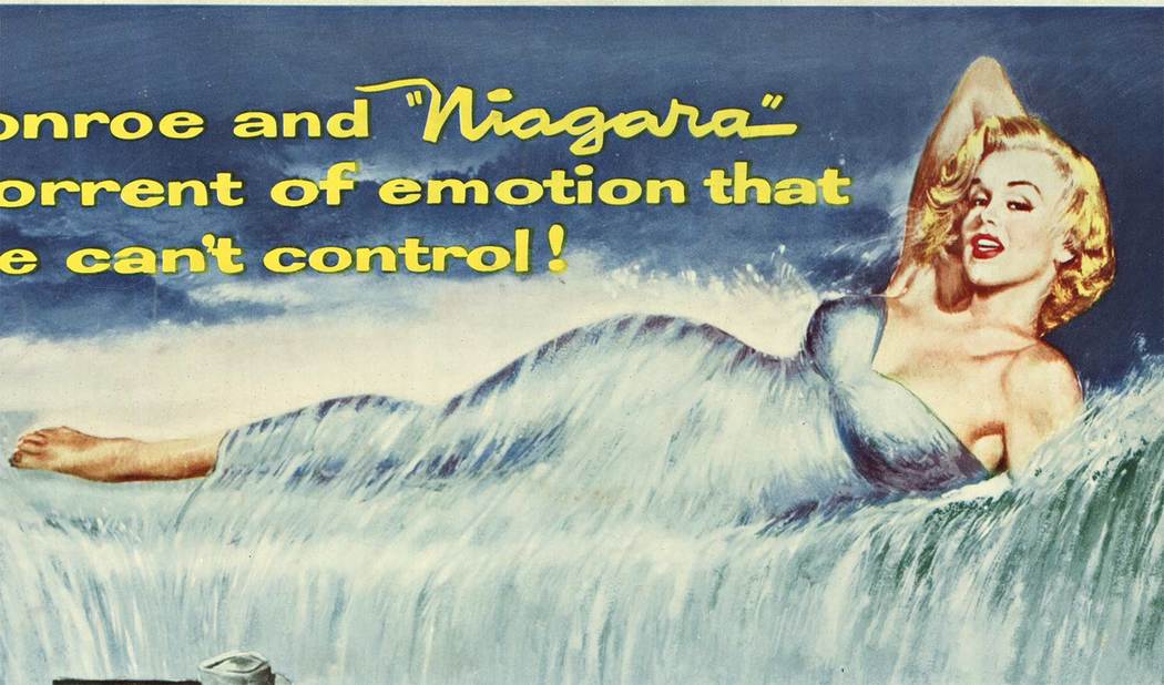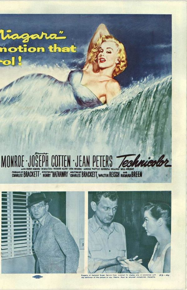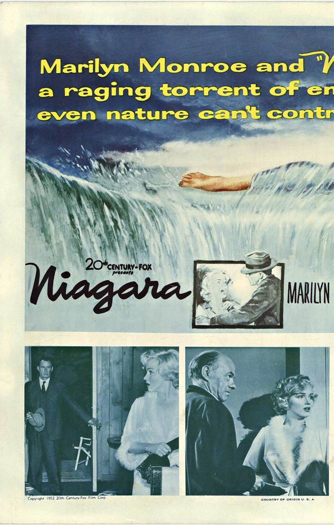 Niagara (1953) is an original/authentic vintage Marilyn Monroe U.S. half-sheet movie poster in the classic horizontal layout many collectors seek for this title. Designed around Monroe posing above Niagara Falls, the artwork is paired with period typography and film-billed credits for a vivid, display-ready look.