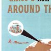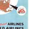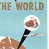 The layout feels open and deliberate, with plenty of space around the central form, giving the piece a calm, expansive quality. The lettering is minimal and direct, letting the imagery carry most of the message. It reflects a moment when global air travel was still new enough to feel both ambitious and carefully mapped.