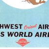 Northwest Orient & TWA Around the World Routes Poster, Global Aviation Map, Circa 1958, Linen Backed