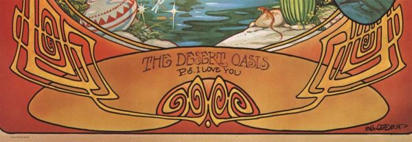 The artist Bill Ogden, often called one of the pioneers of the Southern California psychedelic and surf art scene, became known for his distinctive Art Nouveau–inspired graphics. His work blended psychedelia, surf culture, and California desert imagery, helping shape the visual language of West Coast poster art during the 1960s and 1970s. Ogden also created iconic surf imagery, including the famous “Lost Island of Santosha.”