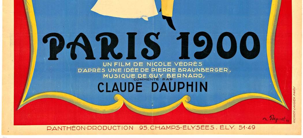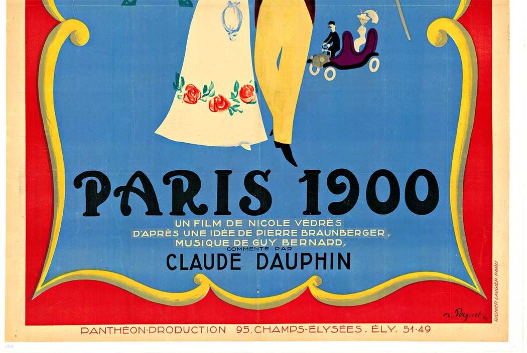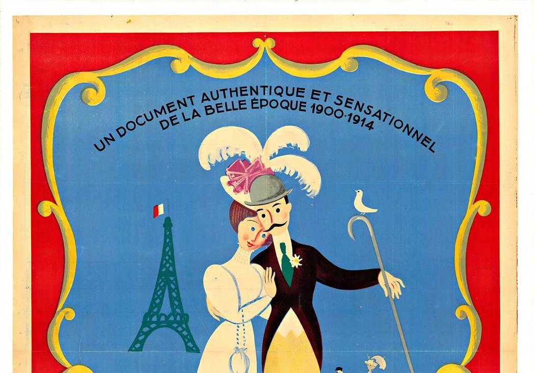 Original French poster for Paris 1900 (1947), the documentary directed by Nicole Védrès, with artwork by Raymond Peynet. This piece is not a reproduction.
