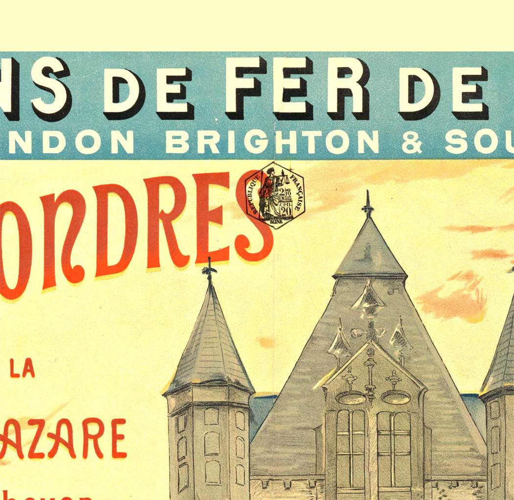 Issued during the expansion of international rail networks, this poster promotes a combined rail and ferry route linking Gare Saint-Lazare to London. The detailed depiction of Tower Bridge—then a relatively modern engineering landmark—emphasizes both destination and journey, highlighting the growing ease of cross-Channel travel for late 19th-century passengers.