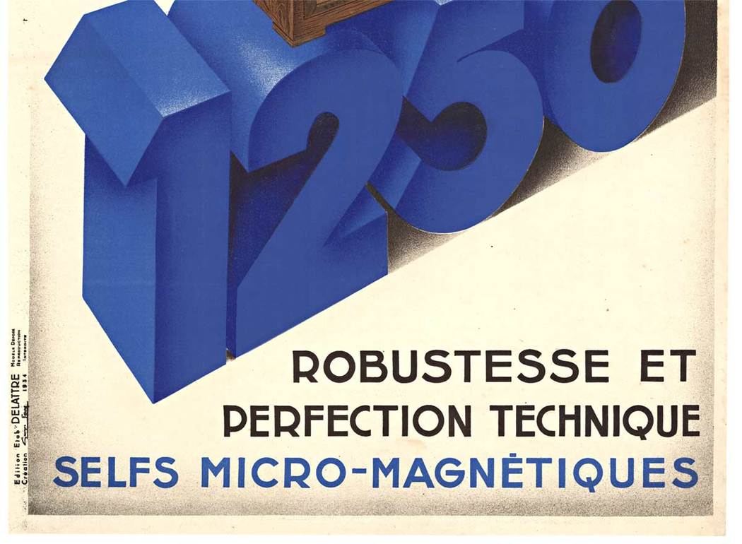 Printed by Delattre. Great early radio advertisement. Original. Linen backed. Excellent condition. Lithograph. “ROBUSTNESS AND TECHNICAL PERFECTION”
