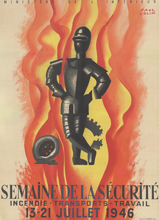 Original, linen-backed, stone-lithograph fire department advertisement from 1946 by Paul Colin. SEMAINE DE LA SECURITE 13-12 Julliet 1946. Paul Colin is reknown for the famous Josephine Baker posters. Great vibrant image. Linen backed in very good conditionn. Full lithograph. Imp. S. A. Courbet, Paris