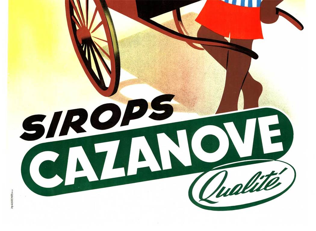 Cazanove’s story spans nearly two centuries of French beverage excellence, and Eric’s poster captures the brand’s golden moment. From 1814 Bordeaux origins to post-war café culture, Cazanove syrups defined French taste and hospitality. This poster celebrates that legacy—a reminder that marketing once aspired to genuine artistry and cultural joy. Own a piece of this vanished world of French commerce at its finest.
