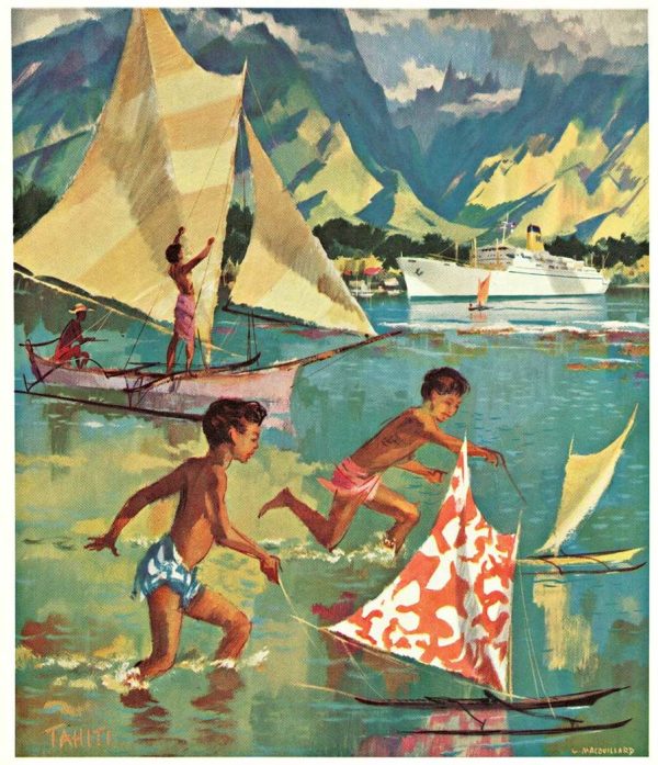 Original Tahiti Matson Line Vintage Travel Poster – South Pacific Cruise Ship Art, Linen-Backed
