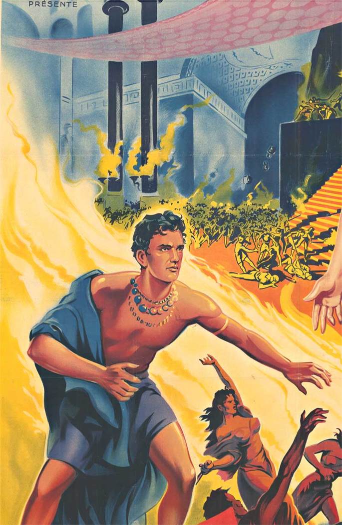 This French “grande” poster features artwork by Roger Soubie, known for dramatic composition and expressive detail. The design showcases a dynamic biblical scene with flowing figures, rich color, and strong movement.