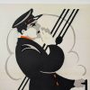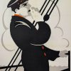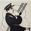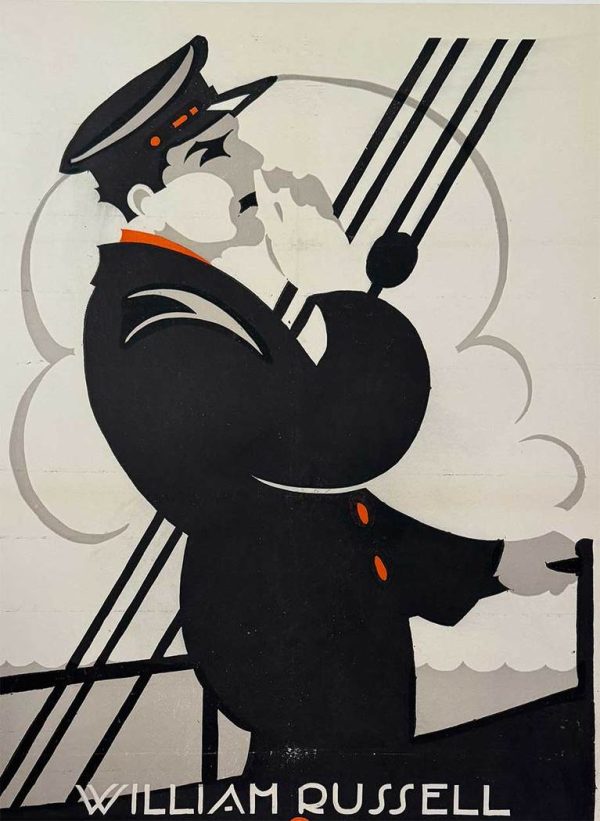 Description: Original Swedish film poster for Herre på skutan (The Sea Master), starring William Russell and distributed in Sweden by Svenska Filmskompaniet, Stockholm, following the film’s original 1917 U.S. production and 1920 Swedish release. Produced during the silent film era, a period from which comparatively few posters survive due to their ephemeral use and low survival rate. The composition presents a stylized maritime figure rendered in bold, simplified forms with strong contouring and restrained color accents, reflecting the emerging graphic modernism of early 20th-century poster design. Printed using period lithographic processes typical of Swedish production, the poster demonstrates the durable paper stock and refined printing quality associated with Scandinavian cinema materials of the period. Professionally linen-backed and in very good condition, with visible wear along the lower portion of the figure’s trouser leg and evidence of prior fold lines, now stabilized through archival restoration. Printer not identified.