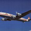 Aircraft-focused airline posters from the 1950s mark a distinct shift from destination imagery to engineering-led identity. The Super‑G Constellation, with its distinctive triple tail and long-range capability, became one of the most recognizable forms of this era, and remains closely associated with TWA’s visual legacy.