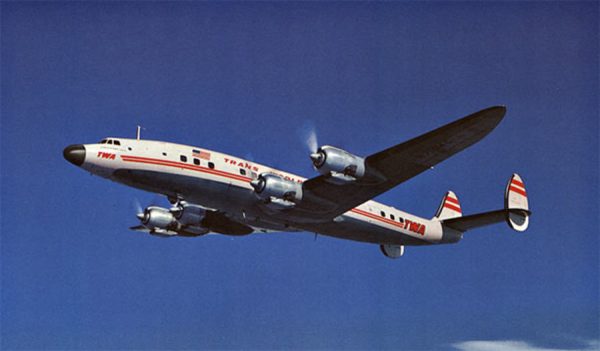 TWA “In Flight with TWA … the SUPER‑G CONSTELLATION” poster