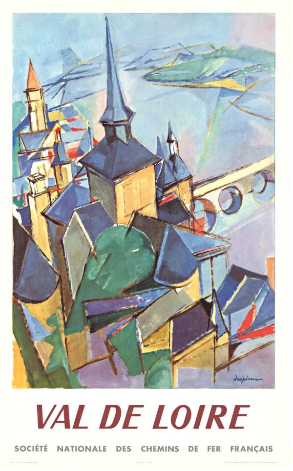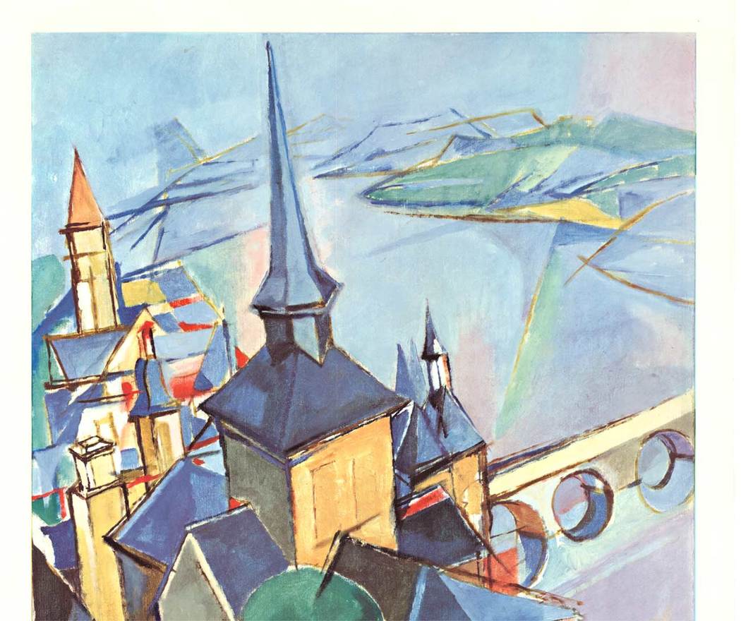 Cubist-influenced travel and decorative posters gained popularity in mid-century France, translating avant-garde painting techniques into accessible graphic compositions for interiors and public display.