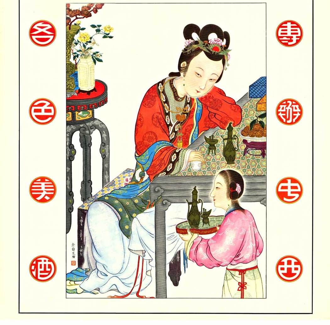 The design brilliance lies in its East-meets-West Art Deco aesthetic. A woman rendered in traditional Chinese dress anchors the composition, seated with imported bottles displayed prominently. Decorative Chinese symbols frame the poster’s borders, while the overall layout follows Western Art Deco principles of geometric balance and bold visual hierarchy. This fusion speaks to Lee Mon’s mission: bringing authentic vintage Chinese wine and imported spirits to New York’s growing Chinese-American community while appealing to broader American audiences discovering Asian culture.