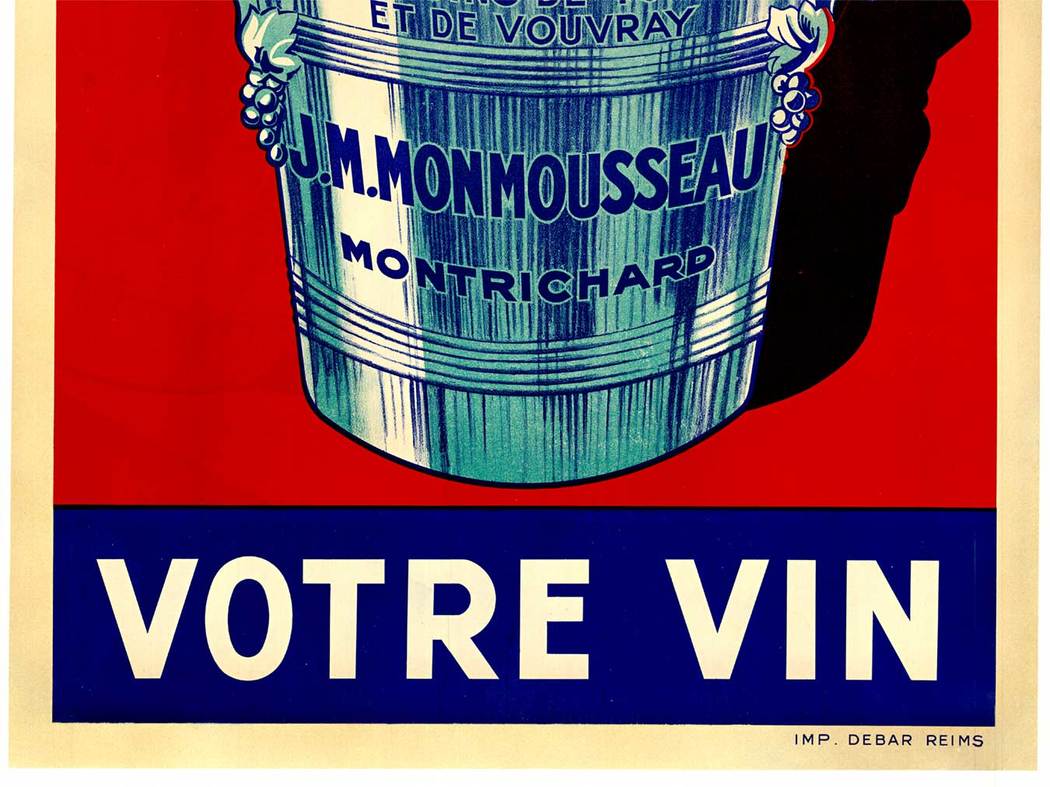 J.M. Monmousseau stands as one of France’s most respected producers of traditional Méthode Champenoise sparkling wine. This Méthode Champenoise poster is a window into the brand’s marketing philosophy during an era when wine advertising was considered high art. The design embodies Art Deco’s geometric boldness while maintaining the sophistication expected of a serious wine collectible.