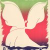 She is shown dancing as a butterfly with green at the top, medium red in the middle, and medium dark indigo blue at the bottom and wording. It is a remanence of Loie Fuller’s fire dance as she dances with huge outstretched arms.